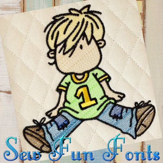 Petit Garcon Assis Broderie Design Croquis Design 4 Tailles Etsy