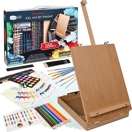 Artina Set De Peinture Vincent 188 Pieces Avec Chevalet Coffret De Peinture Pour Debutants Et Artistes Incl Pastels A L Huile Godets D Aquarelle Couleurs Acryliques Crayons Pinceaux Amazon Fr Cuisine Maison