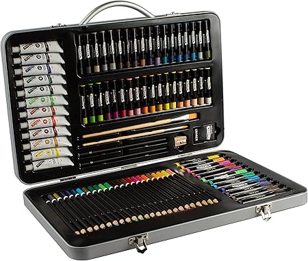 Mont Marte Kit Peinture Premium Essential 90 Pieces Ensemble De Peinture Et De Dessin De Haute Qualite Elegante Mallette En Metal Parfait Pour Enfants Debutants Professionnels Et Artistes